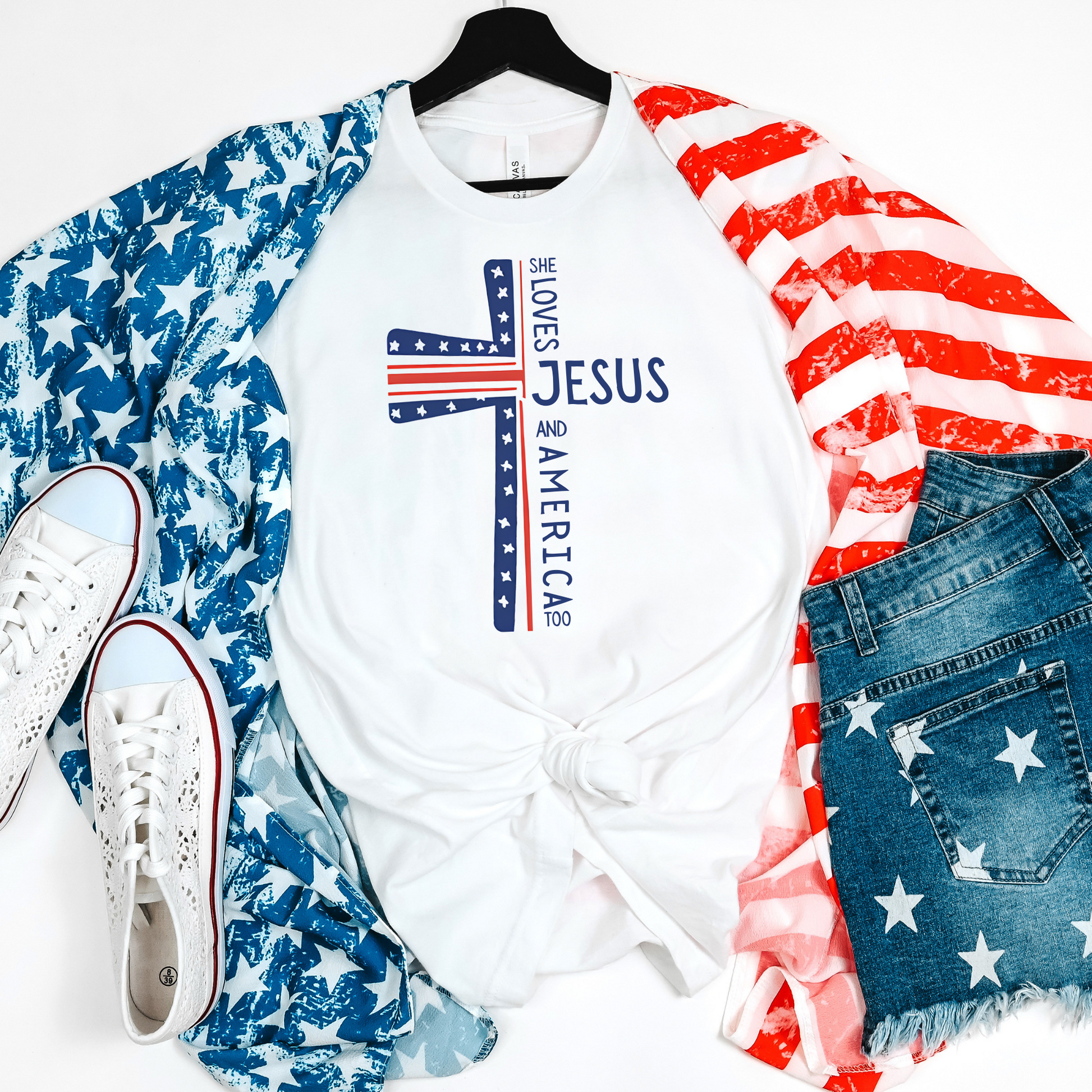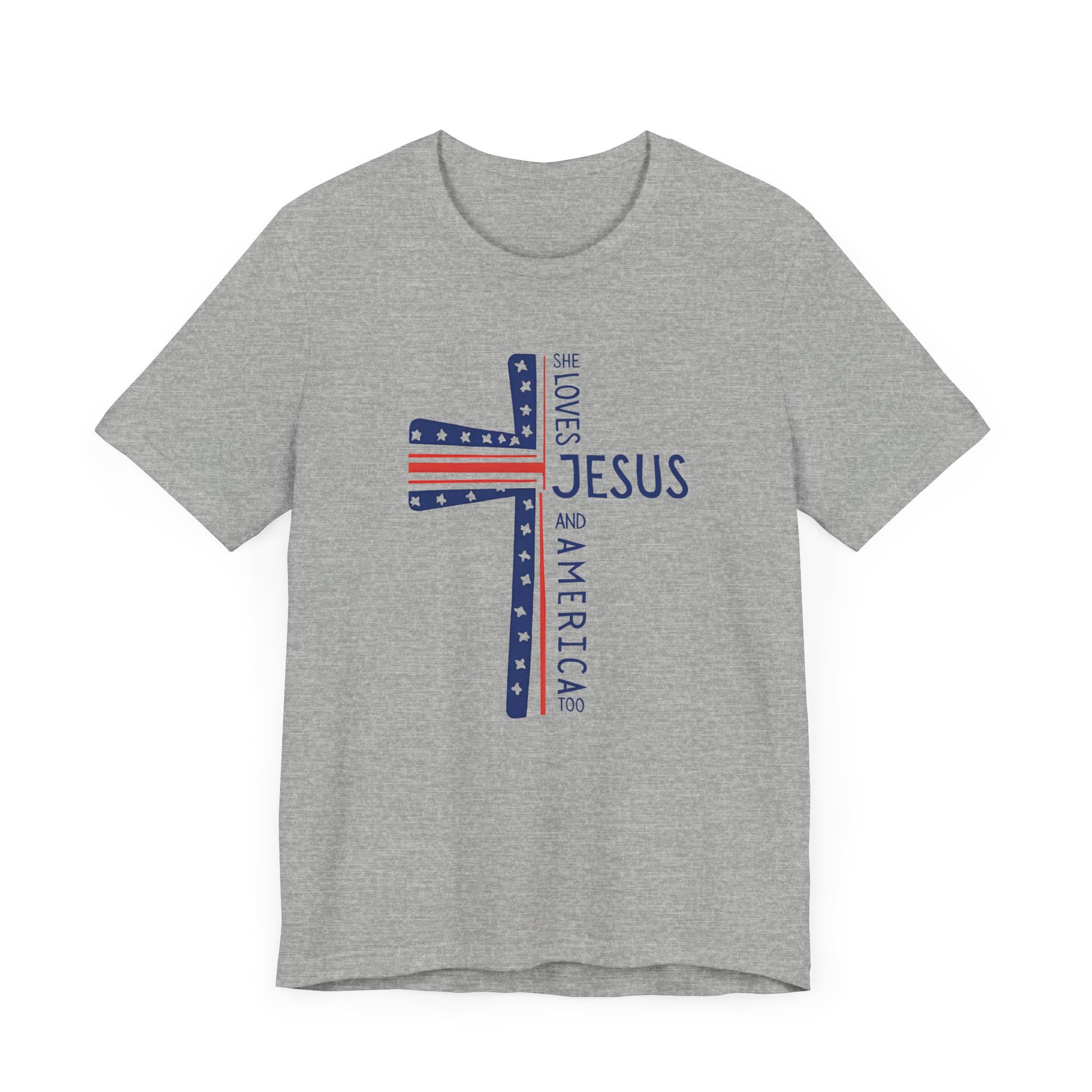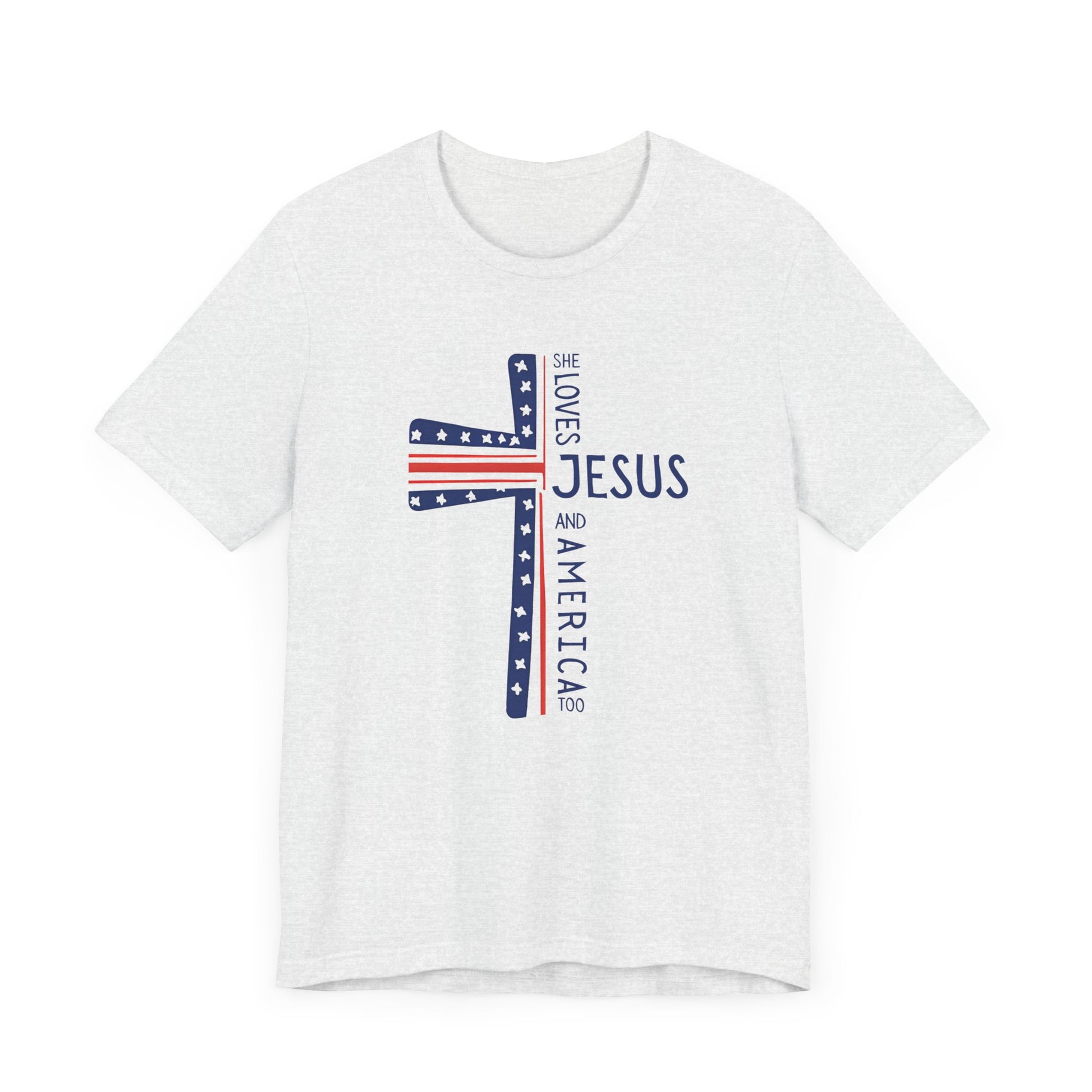 Patriotic Jesus Cross Tee - Unisex Jersey Short Sleeve, Faith Shirt, Christian Apparel, Gift for Believers, 4th of July Tee